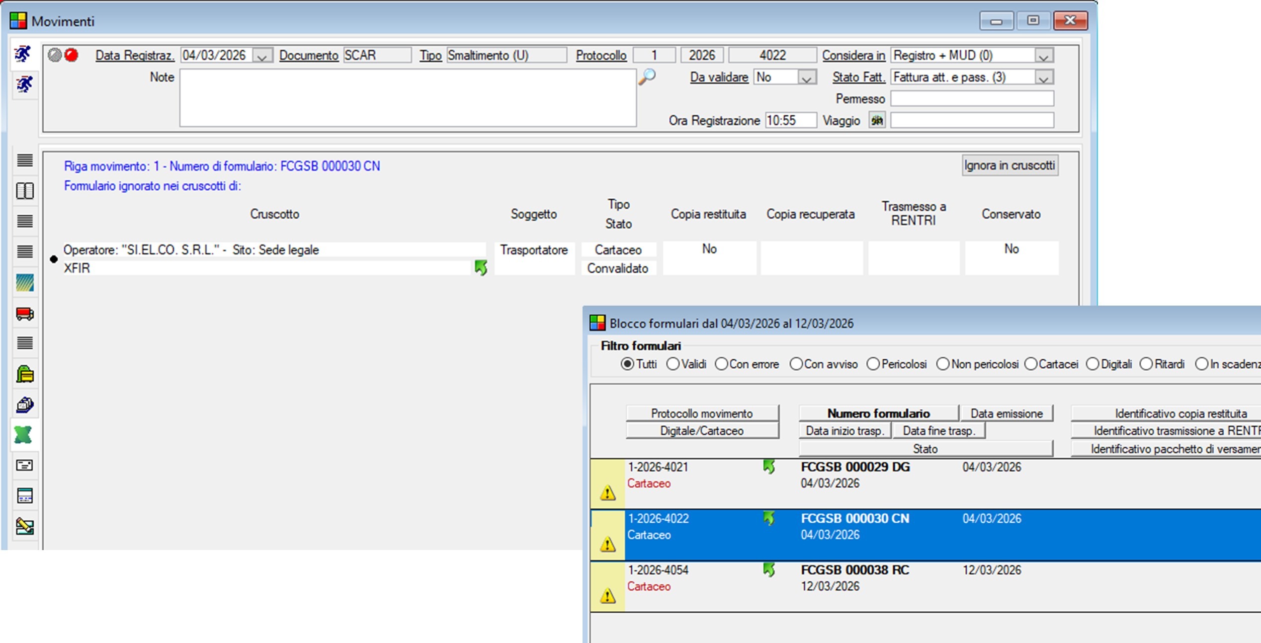 Nel movimento di Reso e nel movimento di Scarico creato con la funzione “Reso con inoltro” non verrà effettuato il controllo sulla duplicazione formulario e relativo blocco al salvataggio del movimento nel caso, sarà pertanto possibile salvare i due movimenti anche se esiste già un movimento avente lo stesso numero formulario.
