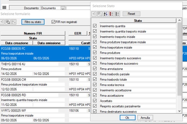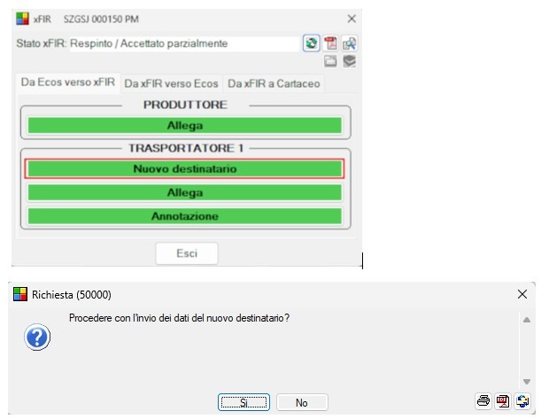 Il produttore che ha effettuato lo scarico o il trasportatore che ha in carico il rifiuto, in caso di respingimento totale o parziale con inoltro a secondo destinatario, se desiderano gestire le azioni sull’xFIR dalla tabella dei movimenti dovranno: