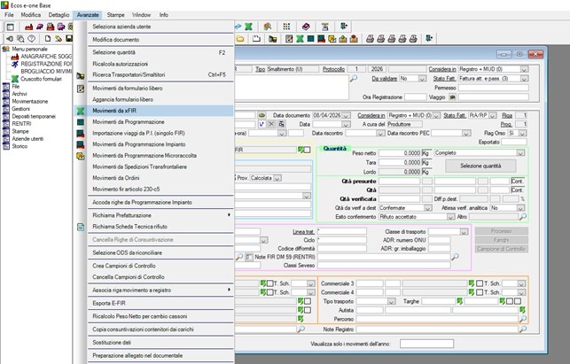 Precisiamo che la funzione che andremo a mostrare è attiva al momento, ESCLUSIVAMENTE DAL MODULO BASE e gestisce tutti i dati, ad esclusione dei Trasbordi e eventuali secondi destinatari. In fase di creazione del movimento, si procedere alla creazione del movimento ( nuovo record) si seleziona il documento, a questo punto si fa click su avanzate -> Movimento da xFIR