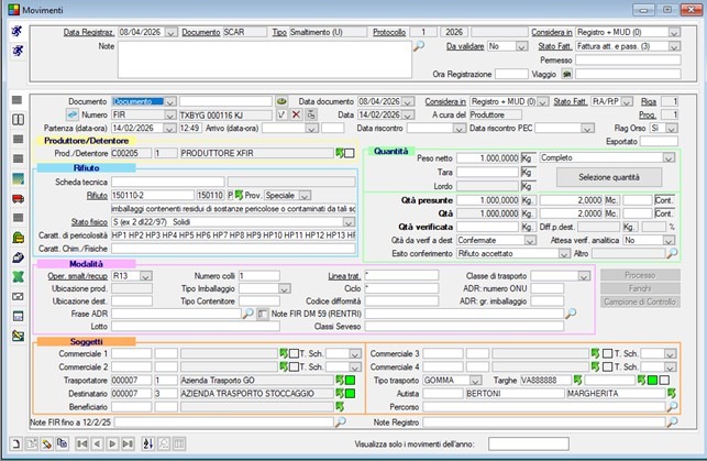 NB: nel movimento occorrerà SEMPRE inserire la scheda tecnica, in quando non è possibile associarla in fase di recupero xFir: