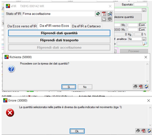2- In fase di Recupero quantità, nelle precedenti versioni se ci fosse stata collegata una partita di carico sarebbe stata scollegata in automatico, adesso da segnalazione esclusivamente se è stato collegato in maniera errata (es. la quantità era 100 e ho collegato partite per 100 kg, facendo il “recupera quantità” il peso è 110 kg , in fase di salvataggio uscirà errore)