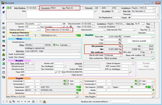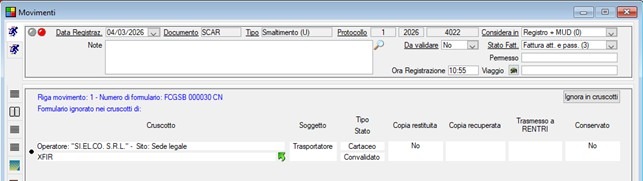 Nel registro Rentri saranno presenti due differenti registrazioni di scarico aT.