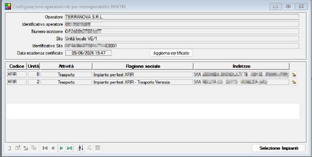 Come si vede di seguito, esistono due impianti aventi codice XFIR, con attività Trasporto ed unità differenti. Esistono, a parità di sito, più unità di trasporto associate.