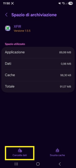 In caso occorra rieseguire il BOARDING sul APPXFIR si consiglia di eseguire la funzione CANCELLA DATI APP sul dispositivo. Per fare questa operazione andare in IMPOSTAZIONI -> APPLICAZIONI -> cercare l’app XFIR ECOS ; fare click su SPAZIO ARCHIVIAZIONE e poi eseguire CANCELLA DATI